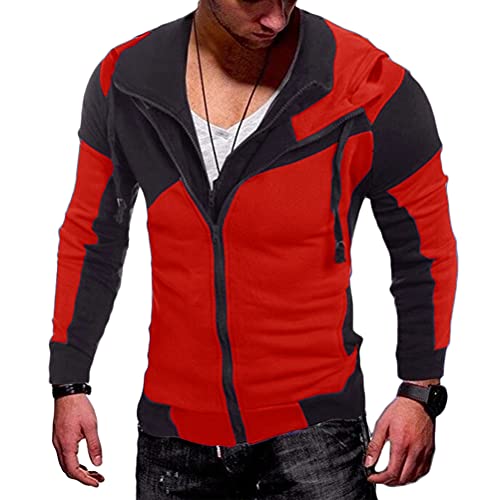 ORANDESIGNE Felpa con Cappuccio da Uomo Giacca con Zip Pullover Hoodie Oversize 2 in 1 Maniche Lunghe Sportivo Fitness Cappotto A Rosso XXL