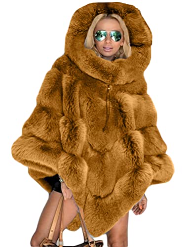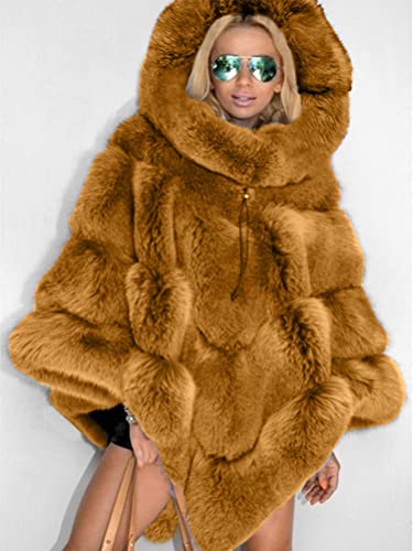 ORANDESIGNE Felpe Donna con Cappuccio Invernali in Pile Caldo Poncho e Mantelle Maglione Collo Alto Elegante Curvy Cappotto Pelliccia Cardigan Outwear Jacket Marrone Taglia Unica