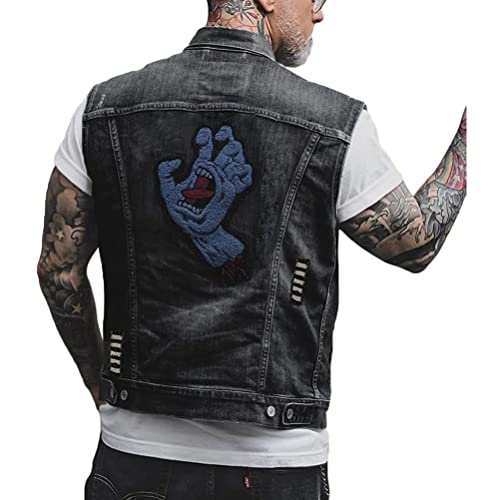 ORANDESIGNE Giacca Jeans Senza Maniche Uomo Stampa Graffiti Punk Gilet Denim Vest Vintage Gilet in Denim Lavato Gilet di Jeans Capispalla Giacca da Moto F Nero XS