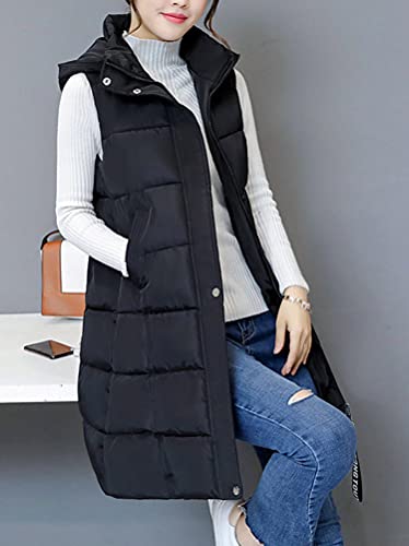 ORANDESIGNE Gilet in Piumino Donna Gilets Media Lunghezza Slim Cerniera Collo Alto Tinta Unita Tasca con Coulisse Giacca Cappotto Autunno Inverno H Nero L