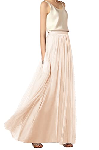 ORANDESIGNE Gonna Lunga in Tulle Donna Tinta Unita a Vita Alta Elastica Casual Elegante Vintage a Pieghe Linea A alla Moda per Festa di Matrimonio 19 S