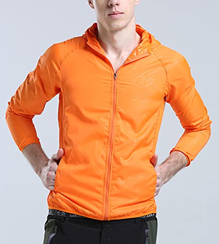 ORANDESIGNE Indumenti di Protezione Solare Giacca Anti UV UPF40+ Cappotto Antivento Impermeabile Giacche Asciutta Rapida Giacca da Corsa Pesca Ciclismo Giacca a Vento Leggera Arancia XS