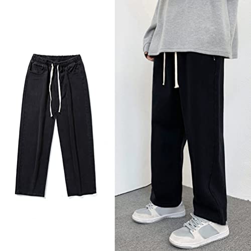 ORANDESIGNE Jeans Patchwork da Uomo Pantaloni Denim Casual Jeans Baggy a Vita Alta Pantaloni Gamba Larga Pantaloni Gamba Dritta Distressed Hip Hop Streetwear Casual J Nero M