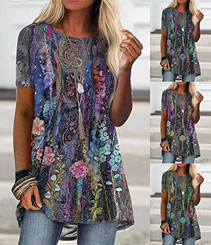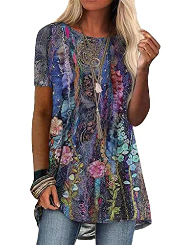 ORANDESIGNE Magliette da Donna Manica Corta con Girocollo Estive Larghe Magliette Basic T-Shirt Donna Lunga Estiva Casual Stampa Geometrica Blusa Shirt Top Elegante C Blu L
