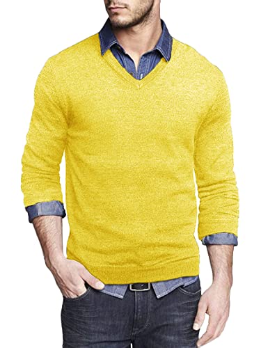 ORANDESIGNE Uomo Maglione Scollo a V Maglia a Maniche Lunghe Pullover Lavorato a Maglia Tinta Unita Undershirt Maglieria Pullover A Giallo XL