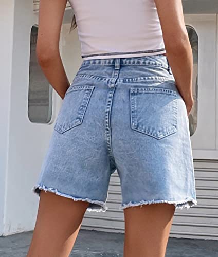 ORANDESIGNE Pantaloncini Donna Jeans Vita Alta Bermuda Shorts Jeans Dritti Denim Jeans Baggy Pantaloni Casual Estivi Corti Jeans Shorts Streetwear Pants con Tasche a Azzurro S