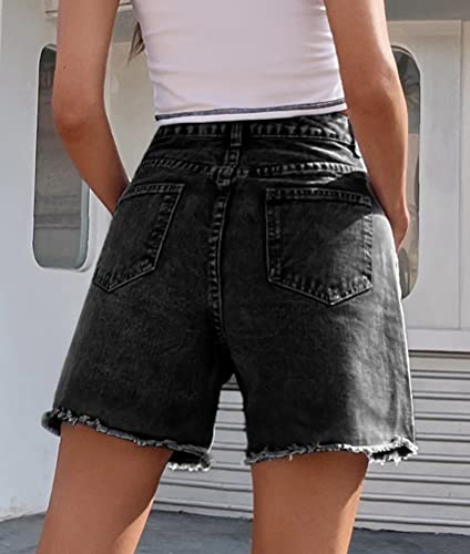 ORANDESIGNE Pantaloncini Donna Jeans Vita Alta Bermuda Shorts Jeans Dritti Denim Jeans Baggy Pantaloni Casual Estivi Corti Jeans Shorts Streetwear Pants con Tasche a Nero L