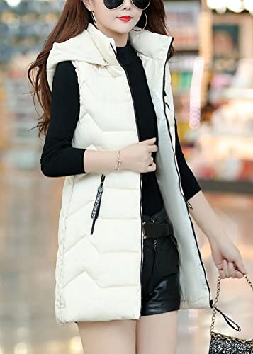 ORANDESIGNE Piumino Imbottito con Cappuccio da Donna Piumino Invernale Imbottito Senza Maniche con Cappuccio Gilet Lungo Trapuntato L Beige XL
