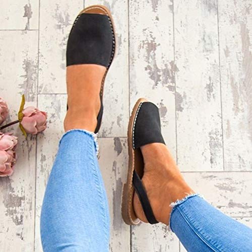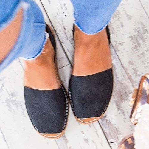 ORANDESIGNE Sandali Donna Eleganti Spiaggia Casuale Infradito Shoes Estivi Tacco Basso Peep Toe Ciabatte Mare Flat Bocca di Pesce Scarpe Espadrillas Nero 36 EU