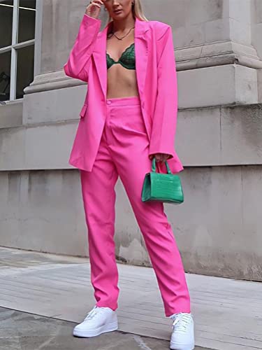 ORANDESIGNE Tailleur Donna Pantaloni e Giacca Elegante Blazer Elegante Completo Tinta Unita Maniche Lunghe Reverse Due Pezzi Tuta Business OL Formale per Ufficio Outfit b-Rosa XXL