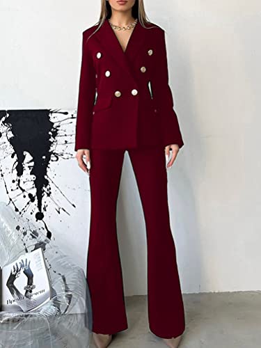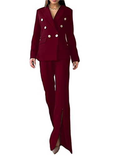 ORANDESIGNE Tailleur Donna Pantaloni e Giacca Elegante Blazer Elegante Completo Tinta Unita Maniche Lunghe Reverse Due Pezzi Tuta Business OL Formale per Ufficio h-Rosso XS