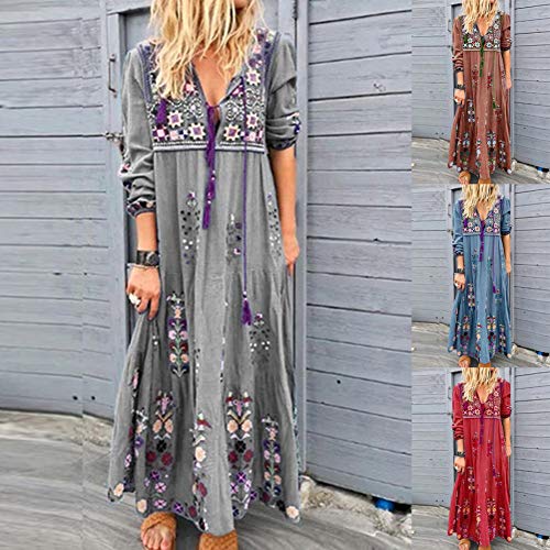 Design: Manica lunga, scollo a V, stile bohemien vintage, una linea, motivo stampato, lunghezza massima, altalena, fluente. Adatto a primavera, estate, autunno e inverno.