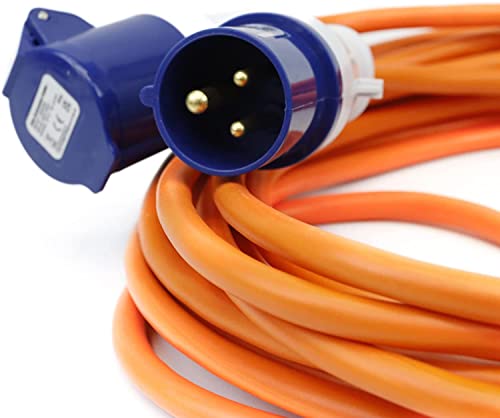 25m Orange Caravan / Camping Hook up Extension Lead Cable with 16 amp Blue Plug and Socket by Mains extension Lead
