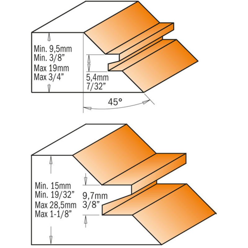 Frese per incastri ad angolo retto