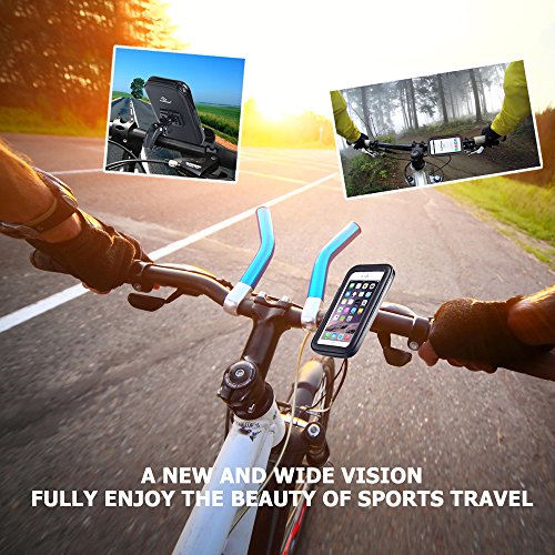 Doppia protezione: innovativo estensibile forte morsetto afferra saldamente il dispositivo supporti, 4 angoli con durable Grip in silicone antiscivolo cinghie saldamente il tuo dispositivo, per fissare a tutto tondo per proteggerlo da eventuali cadute accidentali quando si viaggia su strade sbattere contro. Doppia protezione, perfettamente tenere il telefono cellulare per la sicurezza in bicicletta