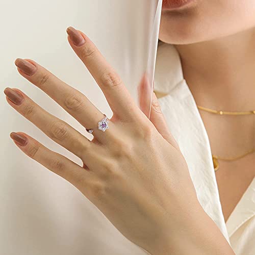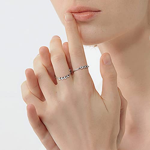 ORAZIO 6Pcs Anelli Ansia Fidget per Le Donne Regolabile Anello Aperto Set Girevole Spinner Anelli per Ansia Cubic Zirconia Fiore Bead Antistress Anelli Impilabili