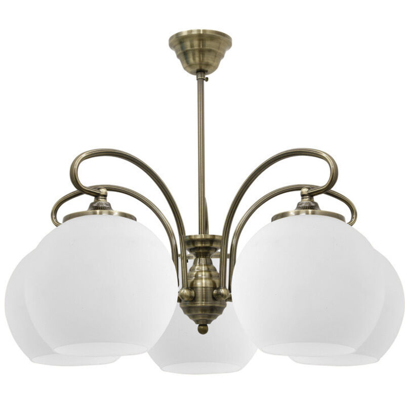 una proposta sofisticata per interni tradizionali, una sala con musica, un caffè con un'atmosfera o ampie soglie inglesi Materiale: base in acciaio, paralume in vetro Colore base: patina Altezza: 40 Larghezza: 51 Profondità: 51 Dimensioni (altezza / larghezza / profondità): 40x51x51 Peso (netto): 1,95 LED integrati: No Quantità sorgenti luminose: 5 Sorgente luminosa inclusa: NoNumero di sorgenti x attacco: 5xE27