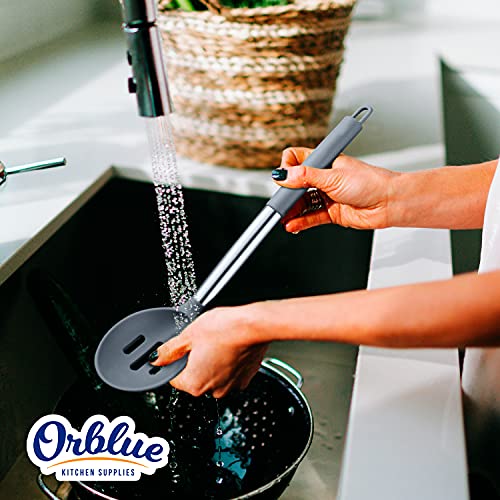 Orblue - Set di utensili da cucina in silicone, 14 pezzi con supporto, teste in silicone per uso alimentare e manici in acciaio inox, con coperchio in silicone resistente al calore, colore