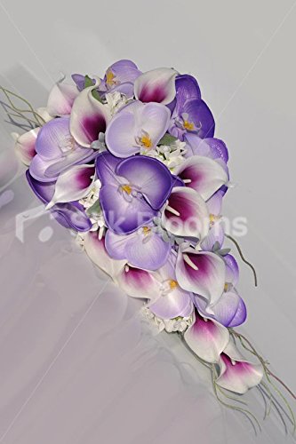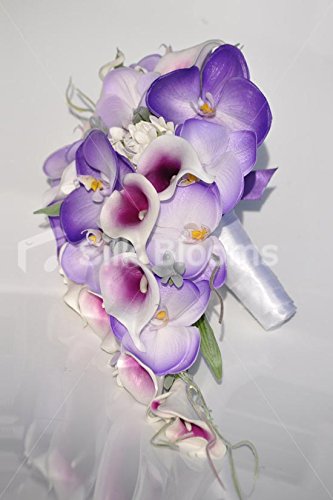 Orchidee Phalaenopsis esotiche viola e lilla e magenta punta gigli Calla cascata bouquet da sposa