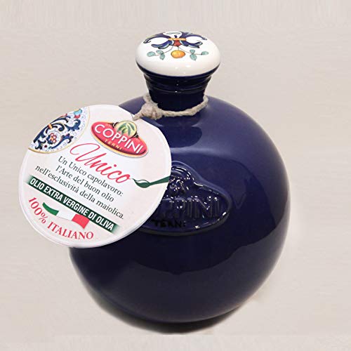 Orcio in Ceramica UNICO da 750 ml Olio extra vergine di oliva COPPINI 100% Italiano estratto a freddo Blu
