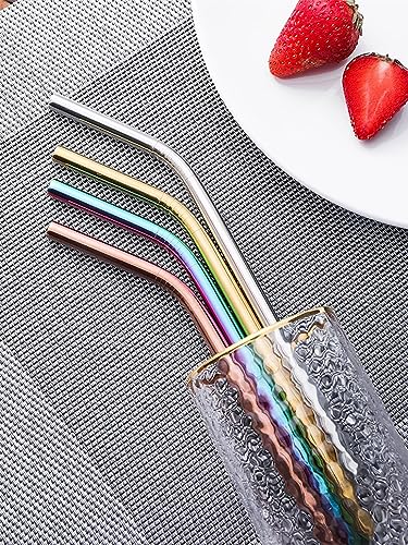 Ordiffi 12 Pezzi Cannucce Acciaio,Cannucce Metallo,Cannucce Riutilizzabili,Paglia Curva In Acciaio Inox 20.5cm,Con 2 Spazzole Per La Pulizia,6mm Dímetro,Per Cocktail,Tè Al Latte,Bevande