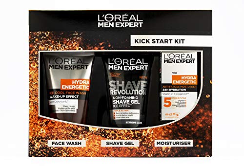 Il set regalo include L'Oreal Men Expert Hydra Energetic Hydra Idrizer (50 ml), L'Oreal Men Expert Hydra Energetic Face Wash (150 ml), L'Oreal Men Expert Shave Revolution Gel (150 ml)