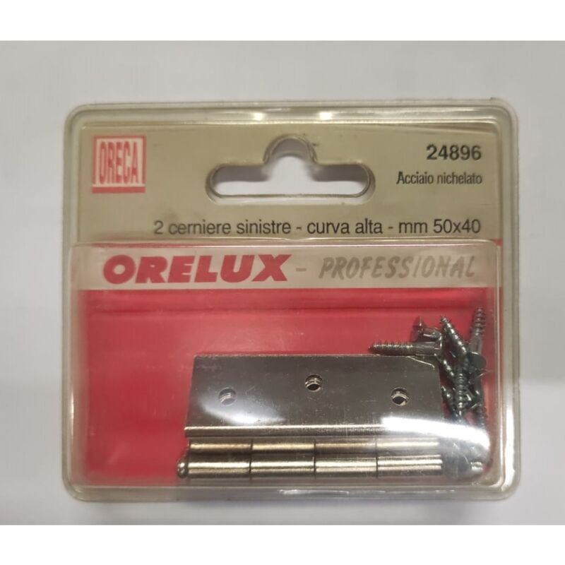 Oreca - cerniera a curva alta 50x40mm perno a levare a sinistra 18.5mm pz2 in acciaio nichelato