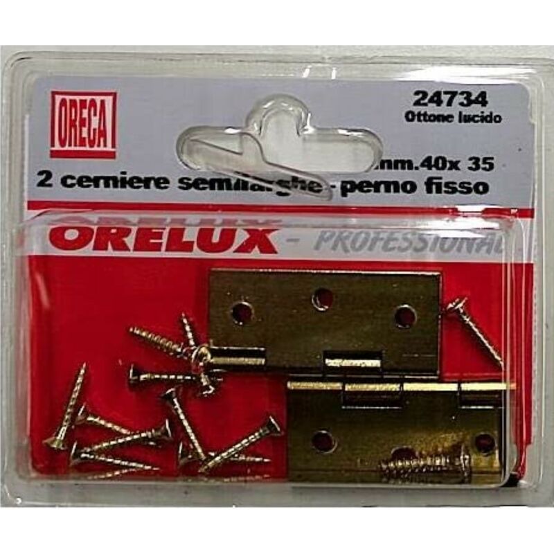 2 PEZZI - CERNIERA SEMILARGA CON PERNO FISSO 40x35MM - IN OTTONE LUCIDO