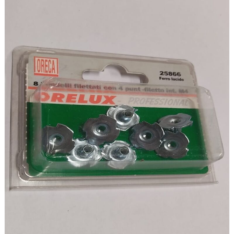 8 pezzi - fondelli filettati con 4 punte per incastro - in ferro lucido - filetto interno m4