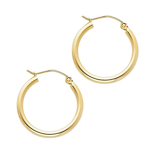 Orecchi a cerchi, 14 carati, 585, oro lucido, giallo, larghezza 2 mm