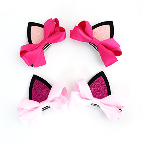 Orecchie fiocchi per capelli fermaglio - 4pcs carino rosso rosa forcine per regali per bambine e bambini da Refee