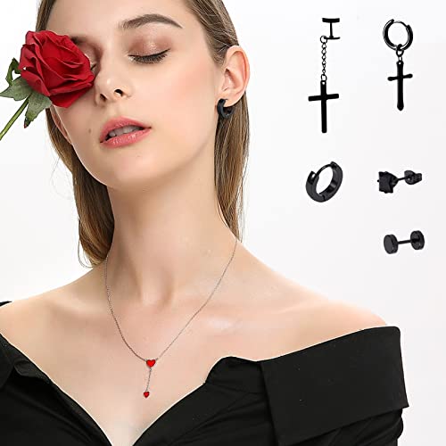 Orecchini da Uomo Acciaio Inossidabile Orecchini a Cerchio Nero Orecchini a Pendaglio Punk Orecchini Piercing per Donna Uomo 10 Paia