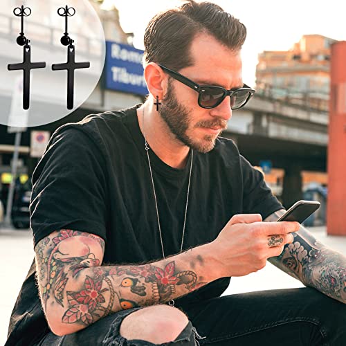 Set di orecchini per uomo: inclusi 10 paia di orecchini a bottone in acciaio inossidabile nero in stili diversi, 4 paia di orecchini a cerchio pendenti con cerniera a croce, 2 paia di orecchini a cerchio, 4 paia di orecchini a bottone dal design diverso.