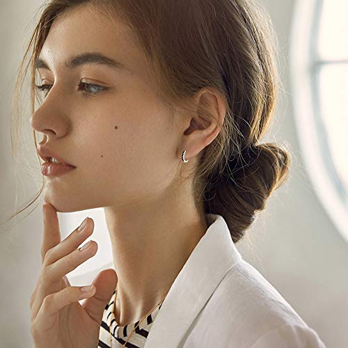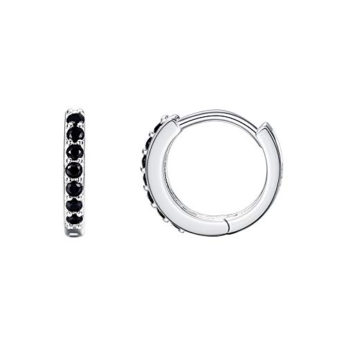 Orecchini Argento 925,EVER FAITH Huggie Orecchini, Piccolo Orecchini a cerchio per donne Ragazze, Nero Zirconia cubica Cuff Orecchini