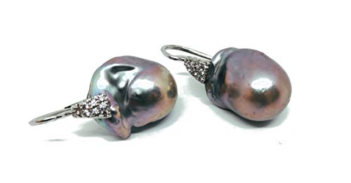 ✿ Materiale: Orecchini in Argento 925, con Perla Scaramazza Vera di colore bianco o grigio e pavè di zirconi a forma di triangolo.
