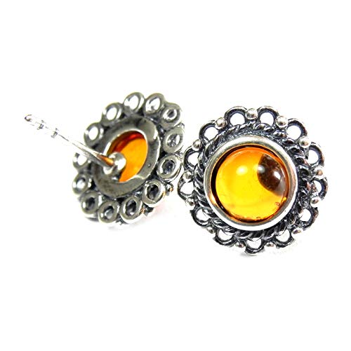 Orecchini Argento Sterling e Ambra Baltica - Collezione Classic, Colore Miele [SEww06]