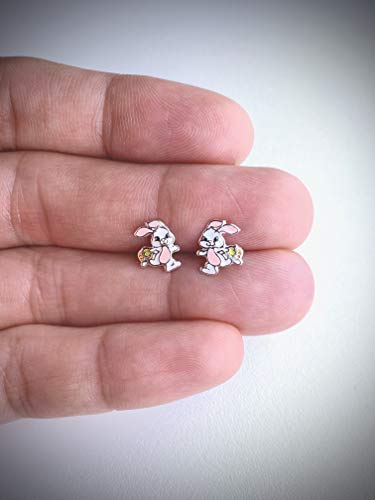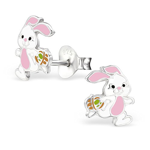 Orecchini in argento sterling, con coniglietto glitterato rosa
