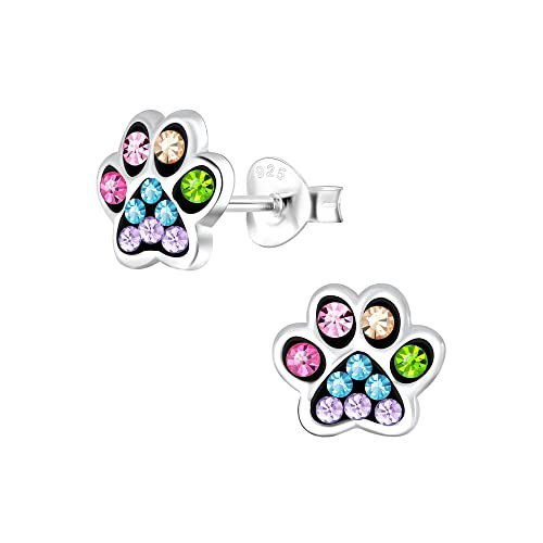 Orecchini in argento Sterling 925 con cristalli colorati con stampa di zampe di cane e gatto