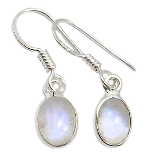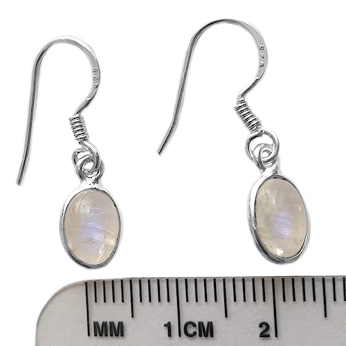 Orecchini in argento Sterling con pietra di luna arcobaleno, 6 x 8 mm