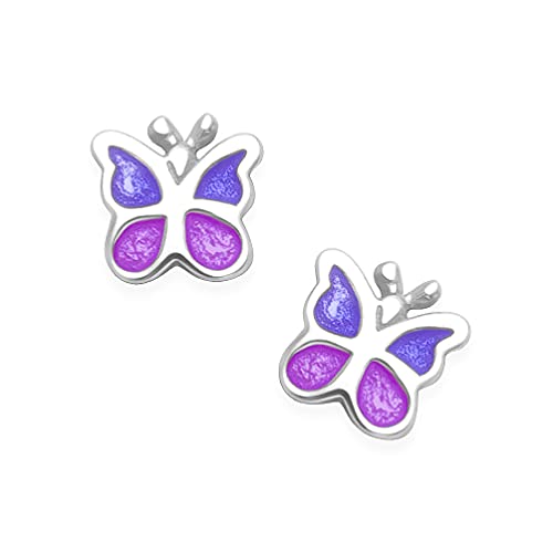 Orecchini in argento sterling smaltato, a forma di farfalla viola e malva - Dimensioni: 6 mm. -