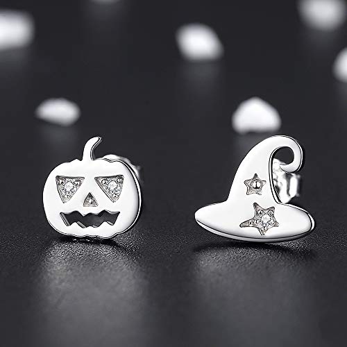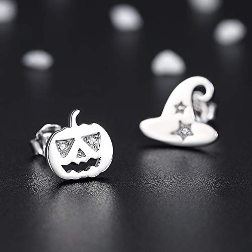 VIKI LYNN - Orecchini asimmetrici a forma di cappello da strega a forma di zucca, in argento Sterling, idea regalo per Halloween