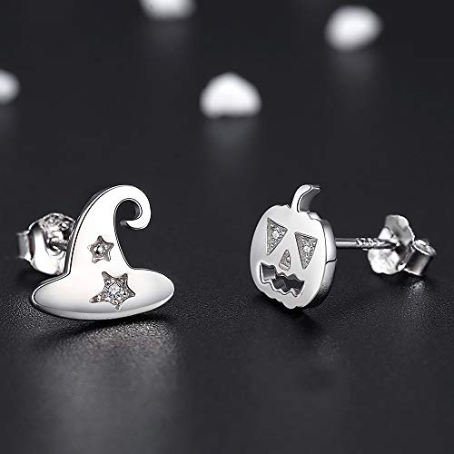 Questi orecchini asimmetrici sono costituiti da un cappello di strega orecchini e un orecchini di zucca perno, questi orecchini hanno elementi di Halloween. Ogni design degli orecchini è completamente delineato con zirconi scintillanti. Questi orecchini sono realizzati in argento placcato in oro bianco 18 carati, il colore è luminoso e stabile, non si sbiadisce facilmente, possono essere indossati a lungo, resistenti all'uso.