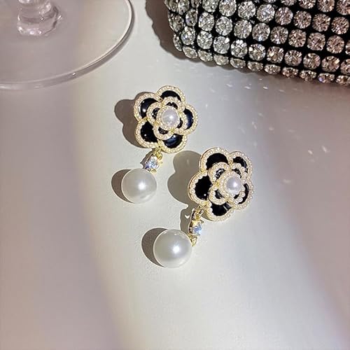 【Servizio a pacchetto】: paio di orecchini a bottone con camelia con pendenti in imitazione di perle, 5 stili tra cui scegliere.
