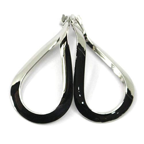 Orecchini in oro bianco 18k, 750, pendenti a cerchio, ondulati, ovali, goccia, lunghezza 3 cm (1.18 pollici) MADE IN ITALY.