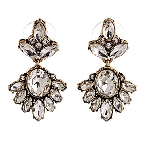 THE FLY SHOP - Orecchini bigiotteria Pendenti a Vite, Base Dorata cromata e Cristalli Bianchi Trasparenti Eleganti e anallergici