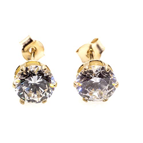 Orecchini a bottoncino in oro giallo 9 carati con zirconia cubica e Oro giallo, colore: White, cod. AV-CZ17-NEW