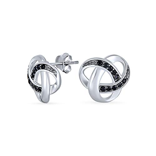 Orecchini a bottone black CZ Cubic Zirconia Interlocking Open Twist Love Knot per donna 925 Sterling Silver