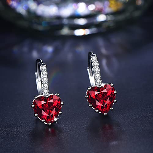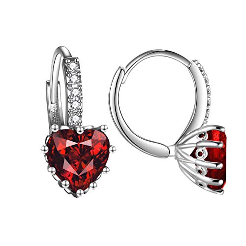 Orecchini a bottone eleganti a forma di cuore con pietre zircone AAA Orecchini a forma di cuore per donna (rosso)