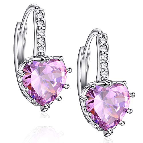 Orecchini a bottone eleganti a forma di cuore con pietre zircone AAA Orecchini a forma di cuore per donna (rosa)