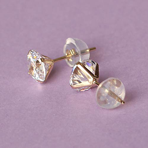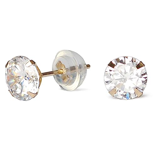 DORO KIMI Orecchini a bottone in oro giallo 14 carati per donna Orecchini a bottone rotondi con zirconi trasparenti da 6 mm